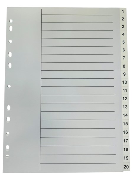 A4 PVC Numerical Index: Numbered from 1–20 for clear document organisation.
