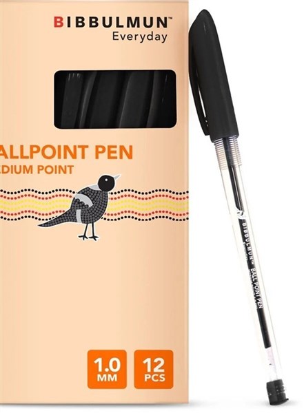 BIBBULMUN Ballpoint Pen Medium 1.0mm Black – Pack of 12 The BIBBULMUN Everyday Ballpoint Pen is a reliable writing companion designed for smooth, consistent performance. With a 1.0mm medium tip, it ensures clear and bold writing, making it perfect for professional, academic, and everyday use. The black ink delivers a neat and professional look, while the transparent barrel makes it easy to track ink levels. Available in a value pack of 12, these pens are ideal for schools, offices, and home use. The Bibbulmun range contributes part-proceeds to the Bibbulmun Fund and is identified by the distinctive magpie icon. The Bibbulmun Fund invests in targeted community projects that are run by community members and have support from local leaders. It encourages, supports and inspires Indigenous communities across Australia.