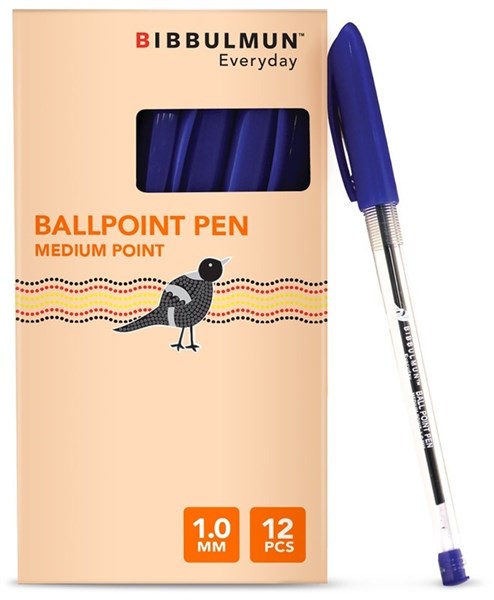 Write with ease and precision using the BIBBULMUN Everyday Ballpoint Pen. Featuring a 1.0mm medium tip, this pen provides smooth, consistent ink flow, making it perfect for daily writing tasks. The blue ink ensures clear and professional-looking notes, while the transparent barrel allows you to check ink levels at a glance. Whether for school, office, or home, this pack of 12 pens offers both quality and value for everyday use. The Bibbulmun range contributes part-proceeds to the Bibbulmun Fund and is identified by the distinctive magpie icon. The Bibbulmun Fund invests in targeted community projects that are run by community members and have support from local leaders. It encourages, supports and inspires Indigenous communities across Australia.