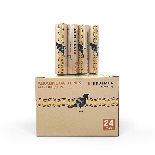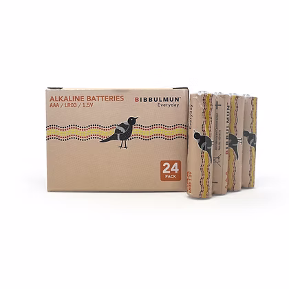 Bibbulmun Everyday AAA Alkaline Batteries – 24 Pack Power your everyday devices with Bibbulmun Everyday AAA Batteries – the reliable and eco-conscious choice for consistent performance. Designed with a stylish Indigenous-inspired print, these alkaline batteries are perfect for remote controls, clocks, wireless mouse, toys, torches, and more. The 24-pack offers long-lasting power at great value, making it ideal for homes, offices, and schools. Engineered for low leakage and long shelf life, Bibbulmun batteries deliver trusted performance when you need it most. The Bibbulmun range contributes part-proceeds to the Bibbulmun Fund and is identified by the distinctive magpie icon. The Bibbulmun Fund invests in targeted community projects that are run by community members and have support from local leaders. It encourages, supports and inspires Indigenous communities across Australia.