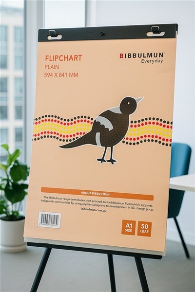 Bibbulmun Everyday Flipchart Pad – A1 Size, 50 Leaf, Plain – 594 x 841 mm Elevate your presentations, meetings, and brainstorming sessions with the Bibbulmun Everyday Flipchart Pad. Designed in A1 size (594 x 841 mm), this flipchart pad features 50 high-quality plain sheets ideal for drawing, writing, and sketching. With pre-punched holes, it's compatible with most flipchart easels. The stylish design includes a culturally significant artwork that reflects the Bibbulmun brand's commitment to supporting Indigenous communities through the Bibbulmun Fund. Whether in classrooms, boardrooms, or creative spaces, this pad is a versatile tool for effective visual communication.