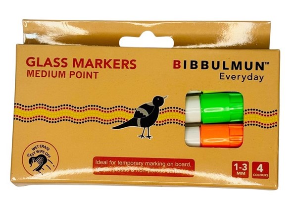 Bibbulmun Glass Marker – 1–2mm Tip – Assorted Colours (Box of 4) Add a splash of color to your writing and drawing on glass and non-porous surfaces with the Bibbulmun Glass Markers. With vibrant, eye-catching colors and a fine 1–2mm bullet tip, these markers are perfect for everything from classroom activities and home organization to business presentations and creative artwork. The water-based ink delivers smooth, streak-free lines that are easy to wipe off with a damp cloth, making them ideal for glass boards, mirrors, windows, and more.