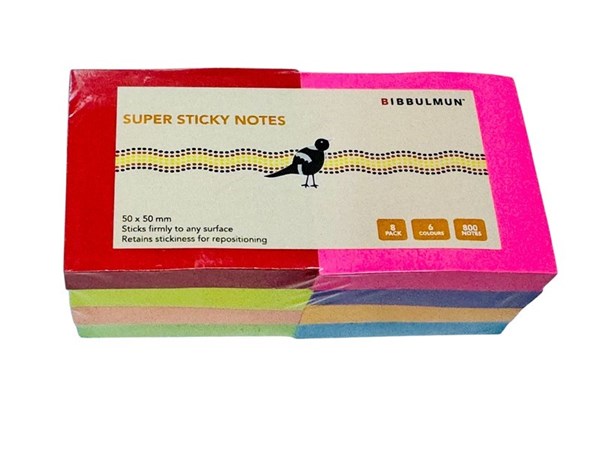 Bibbulmun Super Sticky Notes – 50mm x 50mm, Pack of 8 Assorted Colours