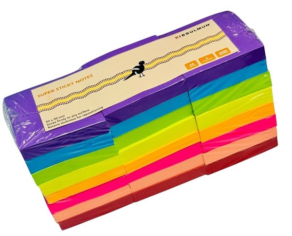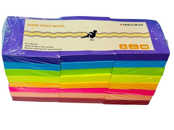 Bibbulmun Super Sticky Notes 50mm x 50mm – Assorted Colours, Pack of 24 (2400 Notes)