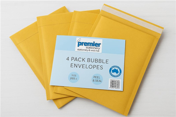 Premier Stationery – 4 Pack Bubble Envelopes (265mm x 180mm, Peel & Seal) Durable, Lightweight Mailing Protection for Everyday Use Send your important items securely and confidently with the Premier Stationery Bubble Envelopes. This 4-pack features medium-sized envelopes, each measuring 265mm x 180mm, making them ideal for shipping books, accessories, documents, electronics, and other delicate items. Crafted with a durable kraft paper exterior and protective bubble lining, these mailers ensure your contents are cushioned against bumps, pressure, and handling during transit. Whether you're running a business or posting personal items, these envelopes are a perfect choice for everyday shipping. Ideal For: Mailing books, brochures, and small documents Shipping electronic accessories or devices Protecting fragile or valuable items Online sellers and small businesses Office and personal use