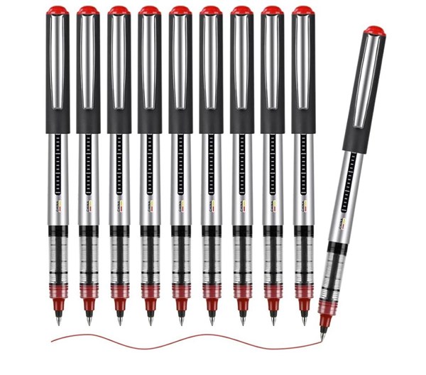 Eyeye Roller Ball Pen Red 0.5mm – Pack of 12 | Smooth Fine Writing Pens Experience smooth and precise writing with the Eyeye Roller Ball Pen. Designed with a 0.5mm tungsten carbide ballpoint, this pen delivers extra fine lines with consistent ink flow, making it ideal for professional, academic, and everyday use. The durable metal clip ensures portability, while the visible ink level window allows you to track usage easily. With its fiber ink flow regulator and large capacity ink tank, this rollerball pen guarantees long-lasting performance without interruptions. Perfect for office work, school, note-taking, or creative projects, the Eyeye Roller Ball Pen combines comfort, style, and efficiency in every stroke.