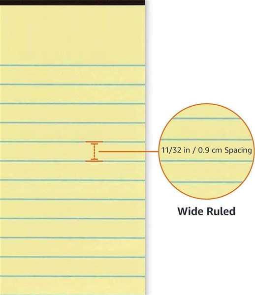 A4 Sized Convenience: Dimensions of 210mm x 297mm (21.6 cm x 29.8 cm) make it compatible with standard files and folders. Wide Ruled Format: Legal ruling with 8mm spacing and margin lines ensures clean, structured, and legible handwriting. Micro-Perforated Sheets: Tear off pages neatly and effortlessly without fraying or tearing at the edges. Canary Yellow Pages: High-contrast paper helps reduce eye strain and makes important notes stand out easily. Smooth Premier Paper: High-quality paper provides a fluid writing experience with all pen types – no feathering or bleed-through. Professional Presentation: Ideal for offices, meetings, legal use, school, and personal organization.