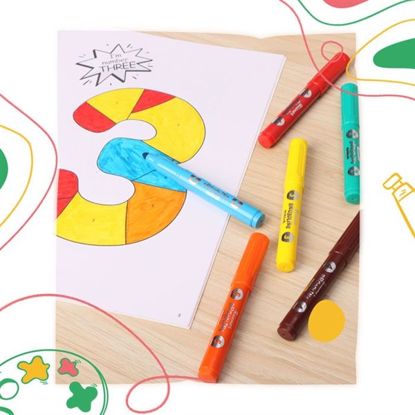 6 Bright Broadline Markers – Easy-to-grip, non-toxic markers in vivid colors, safe for young kids