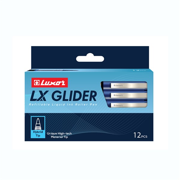 Experience effortless writing with the Luxor LX Glider Refillable Liquid Ink Roller Pen — a perfect blend of smooth performance, precision, and reliability. Engineered with German ink technology, this pen ensures ultra-smooth, skip-free writing every time. The hybrid tip design delivers fine and consistent lines, while the waterproof ink guarantees long-lasting impressions in Black, Blue, and Red variants. Ideal for professionals, students, and everyday users, the LX Glider is refillable, durable, and designed for extended writing comfort. Its high-tech material tip maintains consistent ink flow, ensuring every word glides seamlessly on paper.