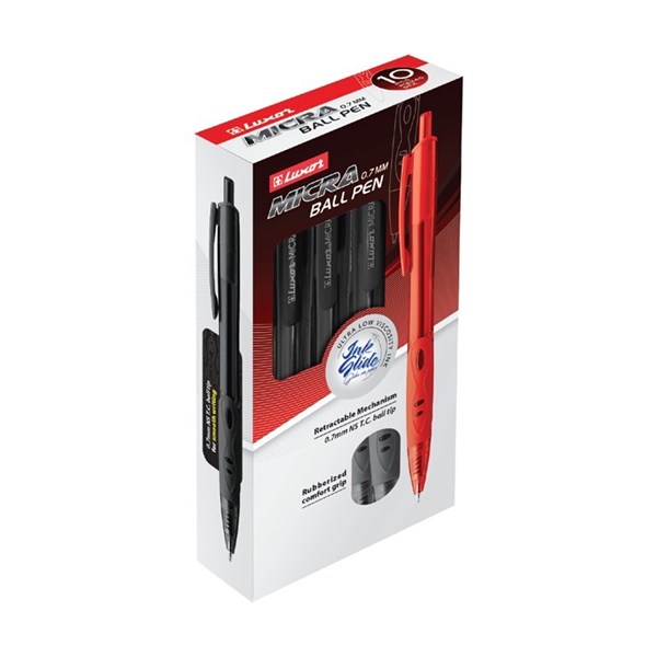Experience smooth and effortless writing with the Luxor Micra Ball Point Pen. Designed with a 0.8mm medium point and advanced low-viscosity ink, this pen delivers consistent, clean lines for everyday writing tasks. The retractable mechanism ensures convenience and prevents ink drying, while the rubberized comfort grip offers excellent control and reduces hand fatigue. Ideal for office, school, or home use, the Luxor Micra combines style, durability, and precision in one sleek design.