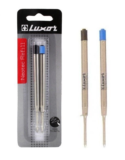 Luxor Neotec Ballpoint Pen Refills | Black & Blue Ink | Parker Compatible | Pack of 2