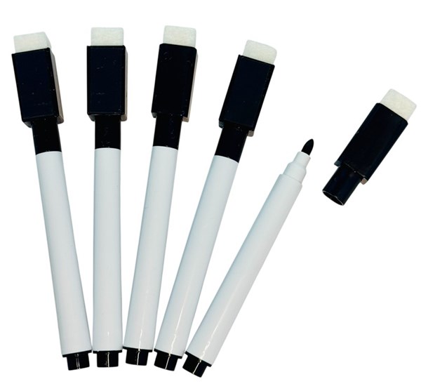 Magnetic Black Whiteboard Markers – Pack of 5 with Eraser Tip & Magnetic Cap