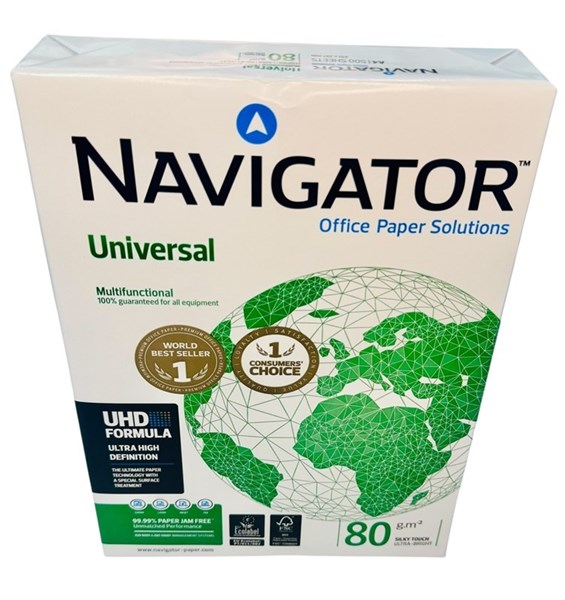 Experience superior quality and unmatched reliability with Navigator Universal A4 80gsm Copy Paper. Engineered with advanced UHD Formula (Ultra High Definition) technology, this premium white paper delivers exceptional results for all your printing needs—whether you're in the office, classroom, or at home. With a brilliant 170 CIE whiteness and 99.99% jam-free performance, every sheet provides a smooth, consistent surface for sharp text and vibrant image reproduction. Sustainably produced and FSC® certified, this paper is not only ideal for high-speed printing and copying but also environmentally responsible. Sold in multiples of 5 reams, it is the ultimate choice for those who demand high productivity and professional-grade quality in every print job.