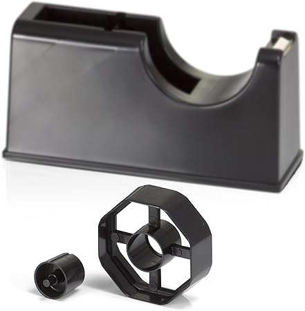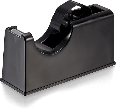 Dual Core Compatibility: Supports both 1-inch and 3-inch core tapes Heavy-Duty Weighted Base: Ensures stability and allows single-handed use Sharp Blade Cutter: Provides smooth and precise tape cutting Sleek Black Finish: Matches any office or workspace aesthetic Multi-Tape Use: Compatible with standard office tapes and packing tapes Ideal for: Offices, schools, warehouses, retail counters, and home use Reusable and Refillable: Long-lasting with replaceable tape rolls Bulk Packaging: Available in sets—Buy in multiples of 6