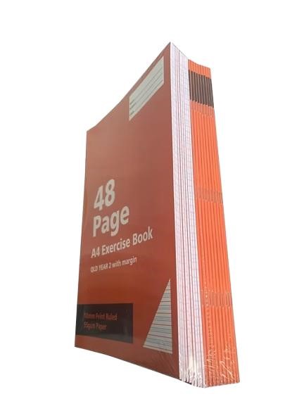 Premier A4 Exercise Book – 48 Pages, QLD Year 2 Ruled with Margin, 55gsm Paper (Buy in Multiples of 12)