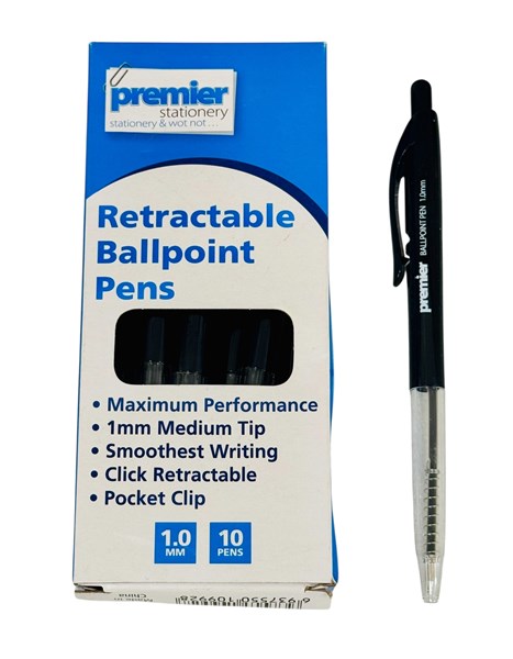 Premier Click Retractable Ballpoint Pen – Black – 1.0 mm (Pack of 10)