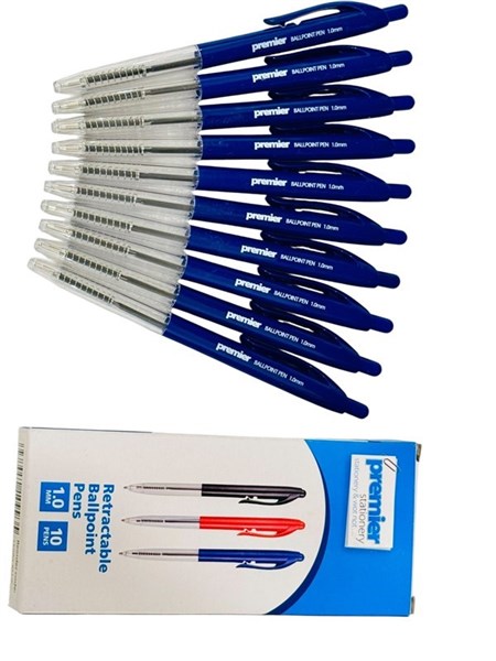 Premier Clic Retractable Ballpoint Pen Blue – 1.0 mm Medium Tip | Pack of 10 Pens