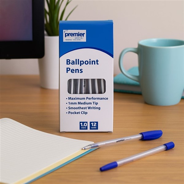 Premier Economy Ballpoint Pen – Medium Point, Blue Ink, 1.0MM – Box of 12 Pens (Buy in Multiples of 12)