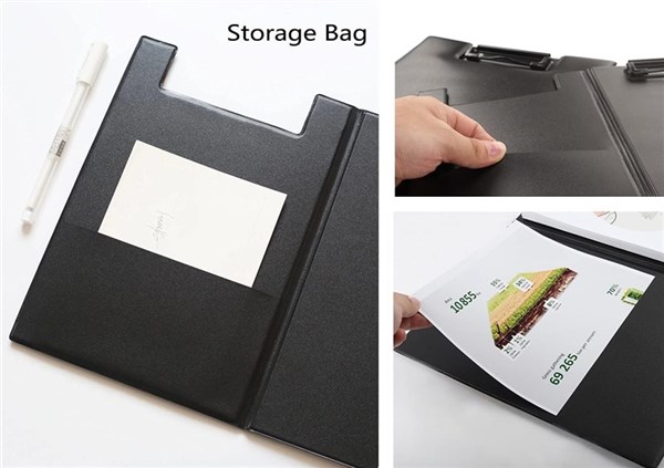 Generous Foolscap (FC) Size: Accommodates larger documents and files with ease. Double-Sided Design: Handy internal pocket for storing extra papers securely. Strong Flat Clip: Keeps pages firmly in place while writing or carrying. Hanging Hook: Easy to store on walls or hooks when not in use. Durable PVC Cover: Protects documents from bending, spills, or wear. Professional Look: Sleek black finish ideal for business, school, or field use.