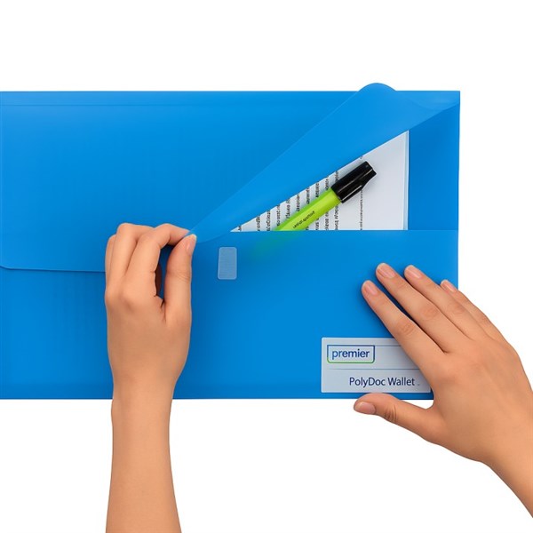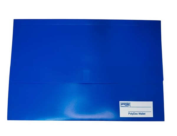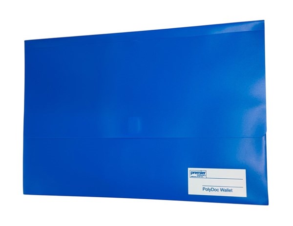 Premier Stationery PolyDoc Wallet – Foolscap Size (FC) | Blue Document File Folder with Velcro Closure, 25mm Gusset | Pack of 10 Durable Polypropylene File Wallets The Premier Stationery PolyDoc Wallet in Foolscap (FC) size is the perfect choice for organizing and protecting your important papers, contracts, reports, and office documents. Made from strong and durable polypropylene, these file wallets are resistant to wear, spills, and tearing. Featuring a secure Velcro closure and a 25mm gusset, each wallet provides extra storage space for bulk documents. The write-on identity panel allows for easy labeling and quick document identification. Available in a professional blue color, these wallets are ideal for offices, schools, and home filing systems. Pack includes 10 PolyDoc Wallets for efficient document management.