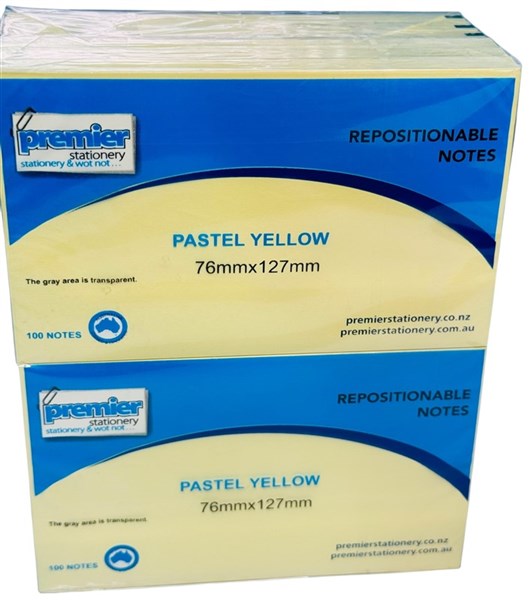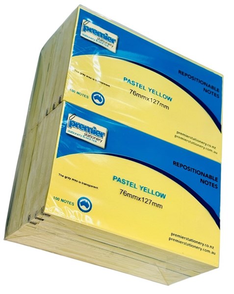 Premier Repositionable Sticky Notes – Pastel Yellow 76mm x 127mm (1200 Sheets Per Pack)