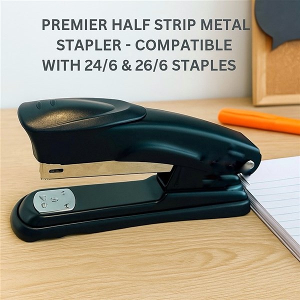 Premier Half Strip Metal Stapler – Compatible with 24/6 & 26/6 Staples