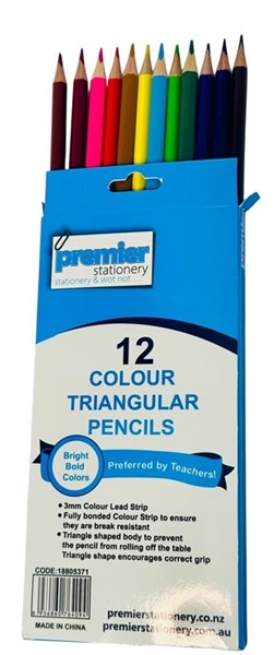 Premier Triangular Colour Pencils – Pack of 12 | Assorted Colours | 3mm Lead | Break-Resistant