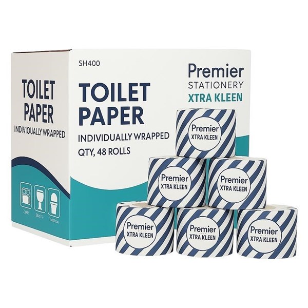 Premier Xtra Kleen 2 Ply Toilet Paper – Individually Wrapped (Pack of 48 Rolls)