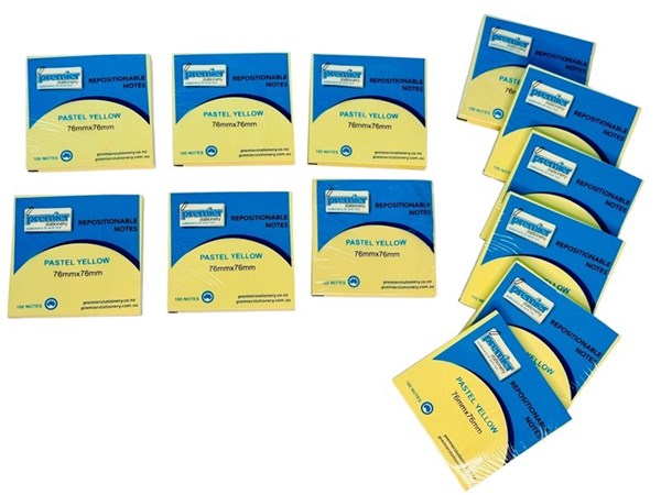 Repositionable Sticky Notes Pastel Yellow 76mm x 76mm - Pack 12 Individually Wrapped Pads